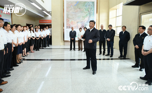 2019年7月15日至16日,习近平在内蒙古自治区考察并指导开展“不忘初心、牢记使命”主题教育。这是16日上午,习近平到内蒙古自治区自然资源厅,实地调研指导开展“不忘初心、牢记使命”主题教育。