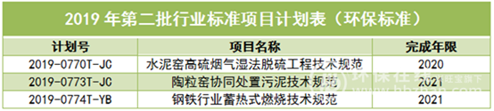 第一批环保标准制定计划发布不久后,8月30日,工信部发布了第二批行业标准制定计划,据统计,其中包括烟气脱硫技术、陶粒窑协同处置污泥技术、钢铁行业蓄热式燃烧技术等三项环保标准。具体完成年限见下表: